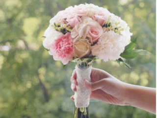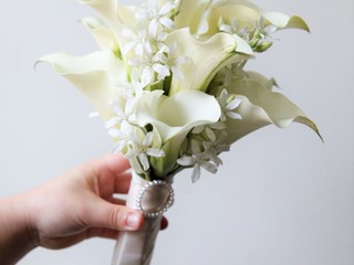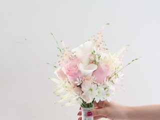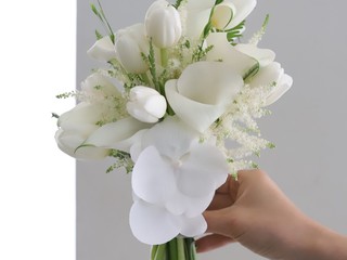 D76 화이트튤립+연보라 포인트 부케